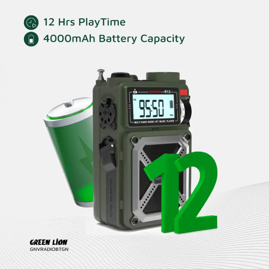 Green Lion Vintage Solar Pro Radio is a one-for-all answer to emergencies and everyday life. A durable ABS construction houses a radio, speaker, power bank, and compass within a single handheld unit. A 4000mAh battery powers up to 14W output, and Bluetooth V5.4 makes connecting to your devices convenient. Turn on AM, FM, SW, and WB stations, and listen to FM radio or music via USB or Micro SD. If something goes wrong, the flashlight, solar power, and hand-crank input provide additional functions. This waterproof device runs for 12 hours and comes built with an SOS alarm, eight natural sounds, and a digital radio display with two tuning modes. The Green Lion Vintage Solar Pro Radio is worthy of use in these outdoor escapades, emergencies, and other routine day-to-day affairs.