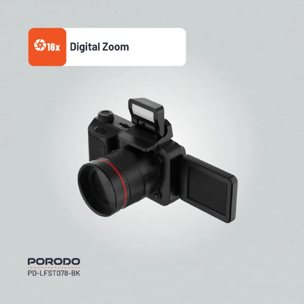 Porodo Lifestyle Digital Camera 16X Zoom | Flip Flash - Black