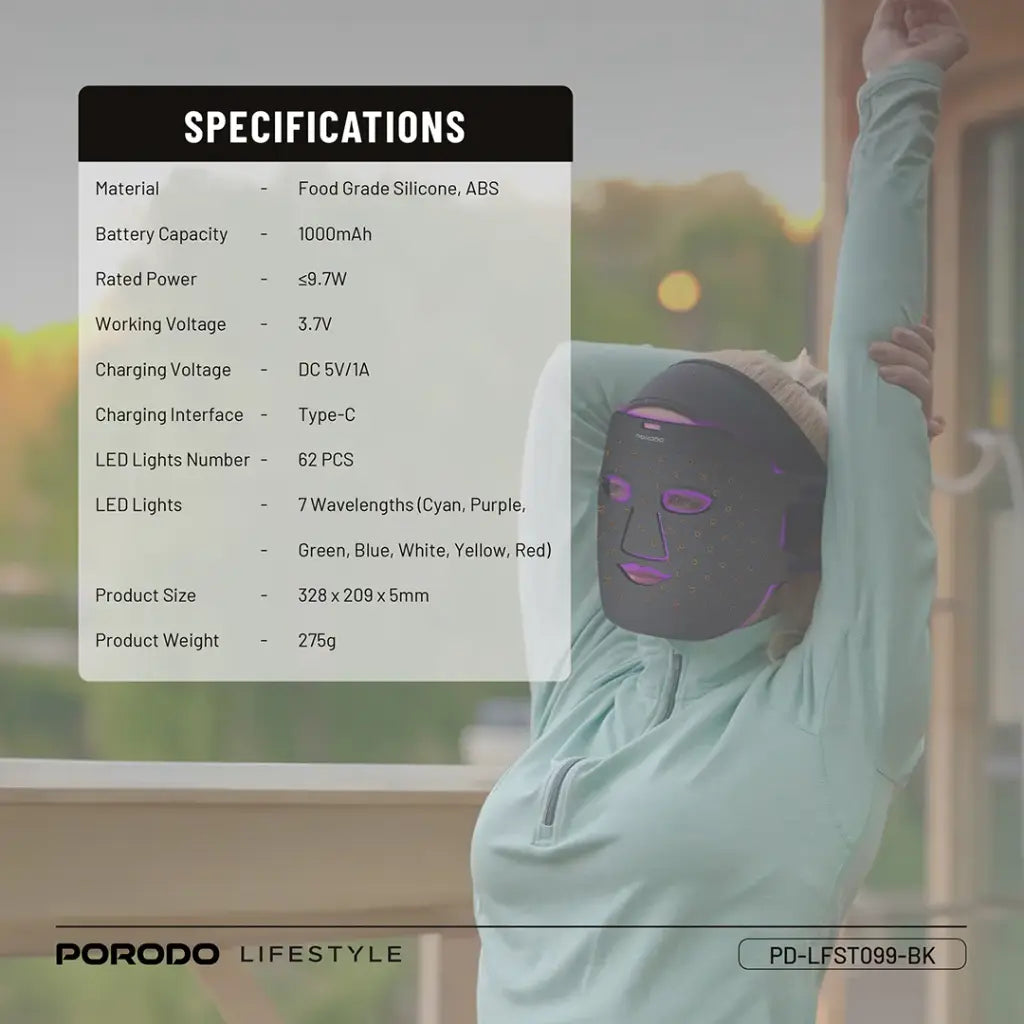 Porodo Lifestyle Red Light Therapy Face Mask - Black