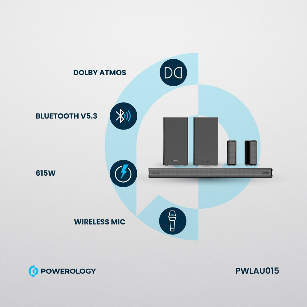 Powerology 5.2.4CH Dual Woofer Wireless Home Theater - Black