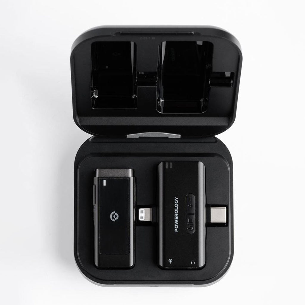 Powerology MFI Dual Connector Wireless Lavalier Microphone x1 Mic 1000mAh - Black