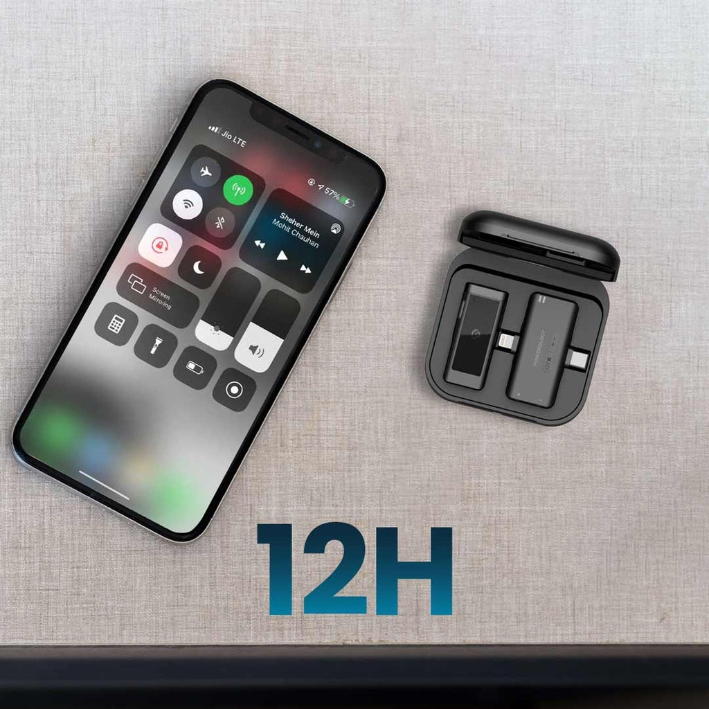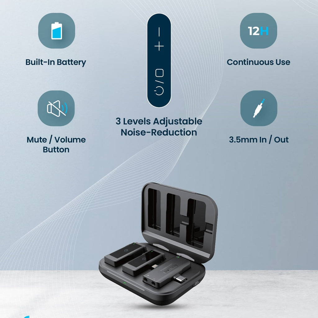 Powerology Wireless Lavalier Microphone is a slim, featherweight, elegant, and efficient audio solution designed specifically for iPhone and iPad users that comes with a receiver and a chargeable Type-C connector case. With 120-meter transmission distance, 12-hour continuous use time, and quick 2-hour recharge time it makes you experience an uninterrupted recording. The 3.5mm input and output ports ensure usability and flexibility by making this device compatible to wide range of audio equipment and make you experience live performances, podcasts, or video recordings in quality like never before. The microphone's mute and volume buttons offer effortless control, while its compatibility with Lightning and Type-C connectors expands its usability across multiple devices. With Powerology Wireless Lavalier Microphone users can enjoy wireless and excellent sound quality which make it ideal for content creators, presenters, and musicians.